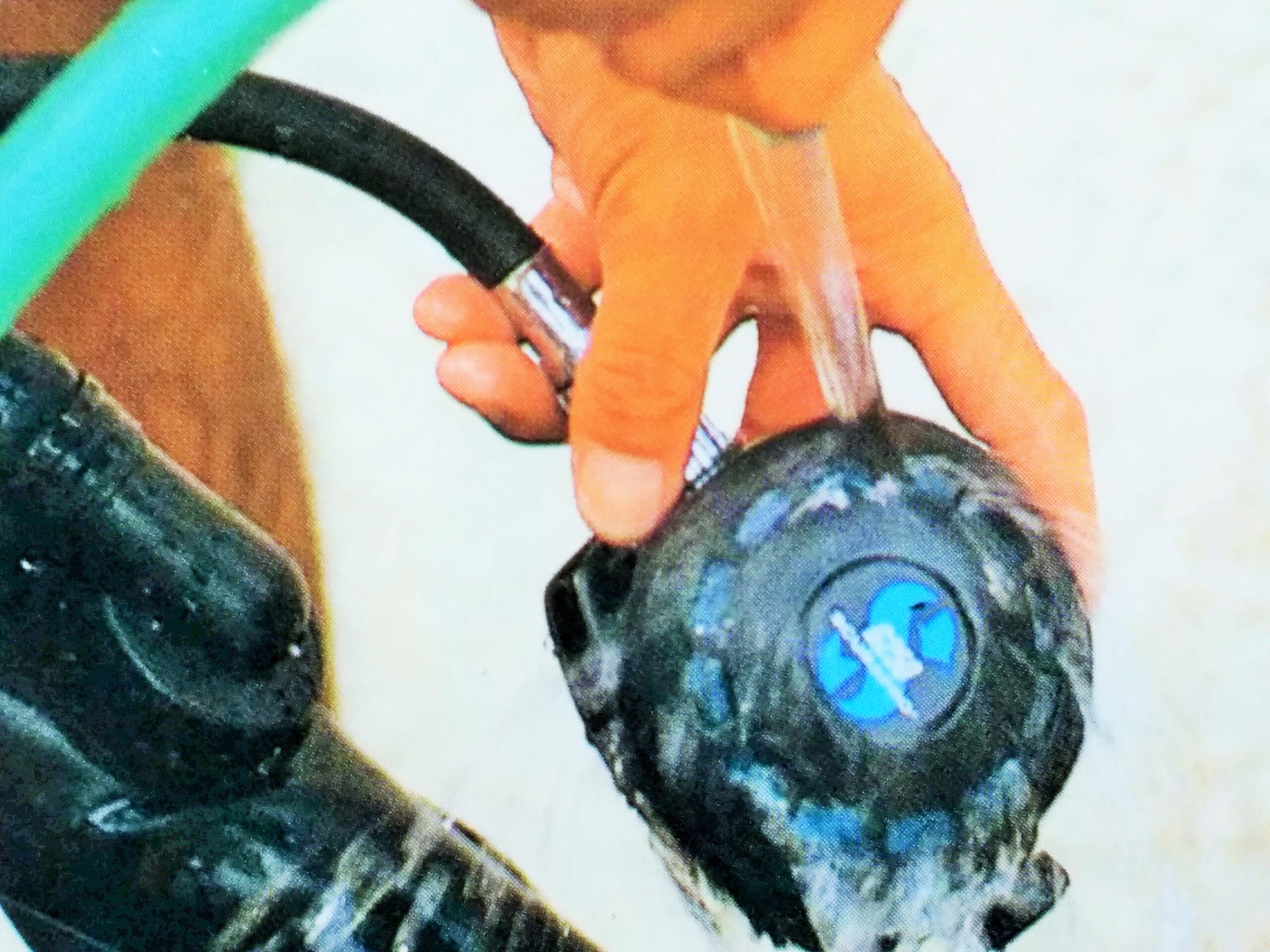 レギュレーターのダストキャップはしっかり締めてからレギュレーターを洗います。洗浄中に、ダストキャップを締め忘れると、レギュレーターの内部に水が入り使用不可能となります。また、水に入れた時にパージボタンを押すと水が内部に侵入してしまいますので絶対に押さないようにしましょう。